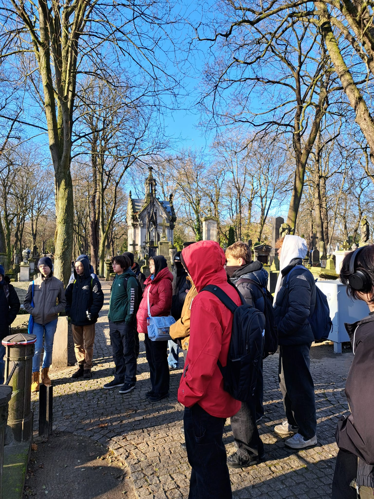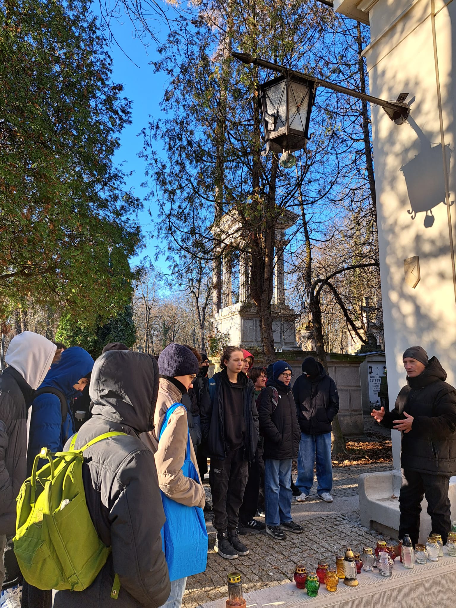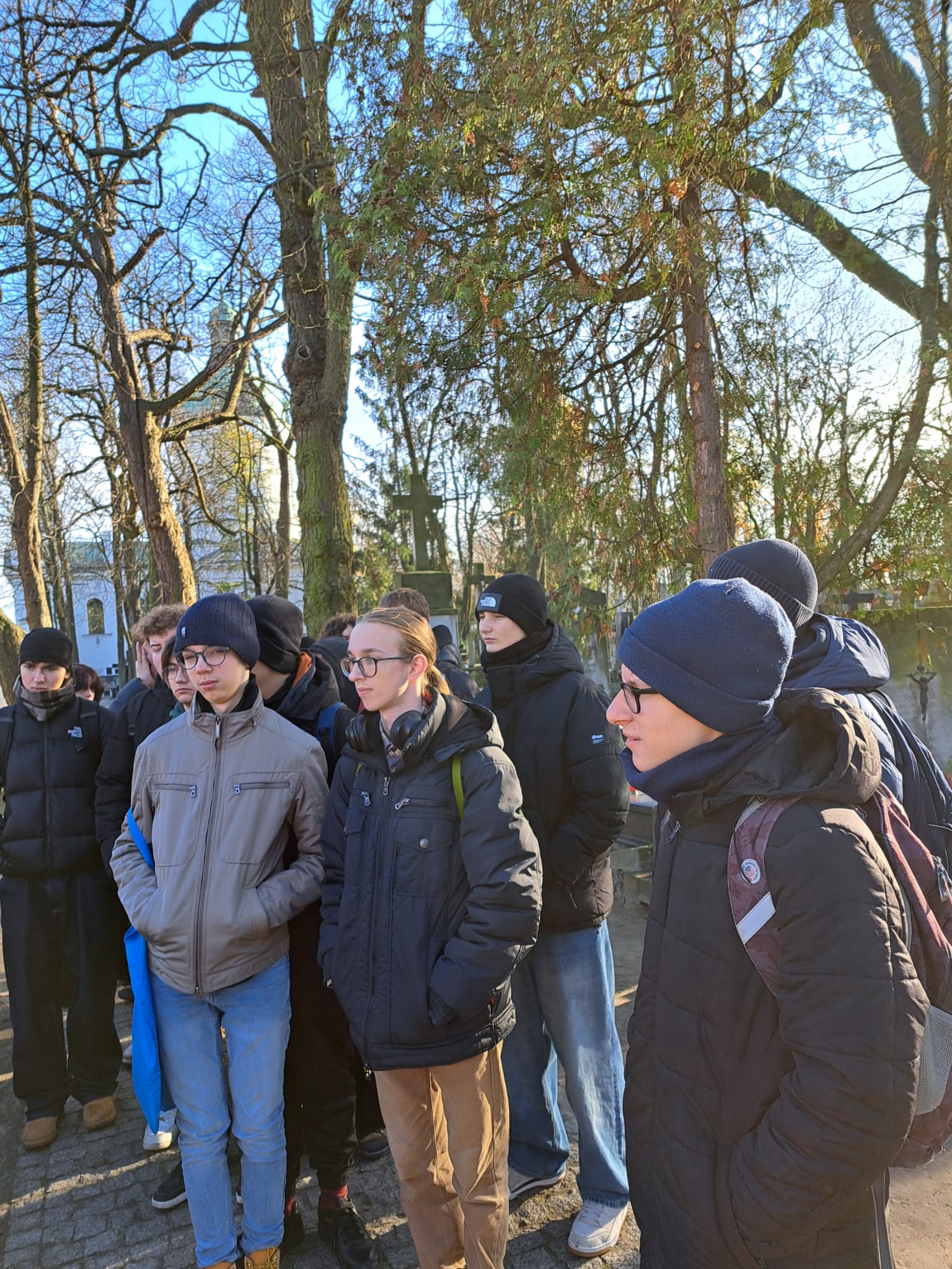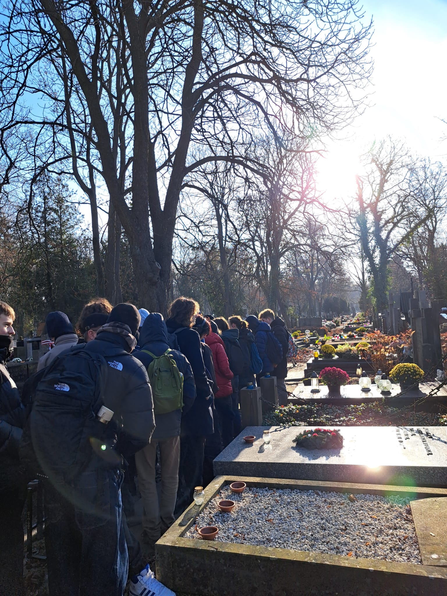 W środę 19 listopada uczniowie 3a odwiedzili znany warszawski cmentarz Stare Powązki. W czasie spaceru towarzyszył nam Pan Przewodnik, który bardzo ciekawie opowiadał o tym niezwykłym miejscu oraz o wybitnych postaciach polskiej historii i kultury pochowanych na Powązkach. Odwiedziliśmy także grób Pana Jerzego Sterkowskiego, nauczyciela naszego liceum. Zapaliliśmy symboliczny znicz i uczciliśmy minutą ciszy pamięć Pana Profesora.