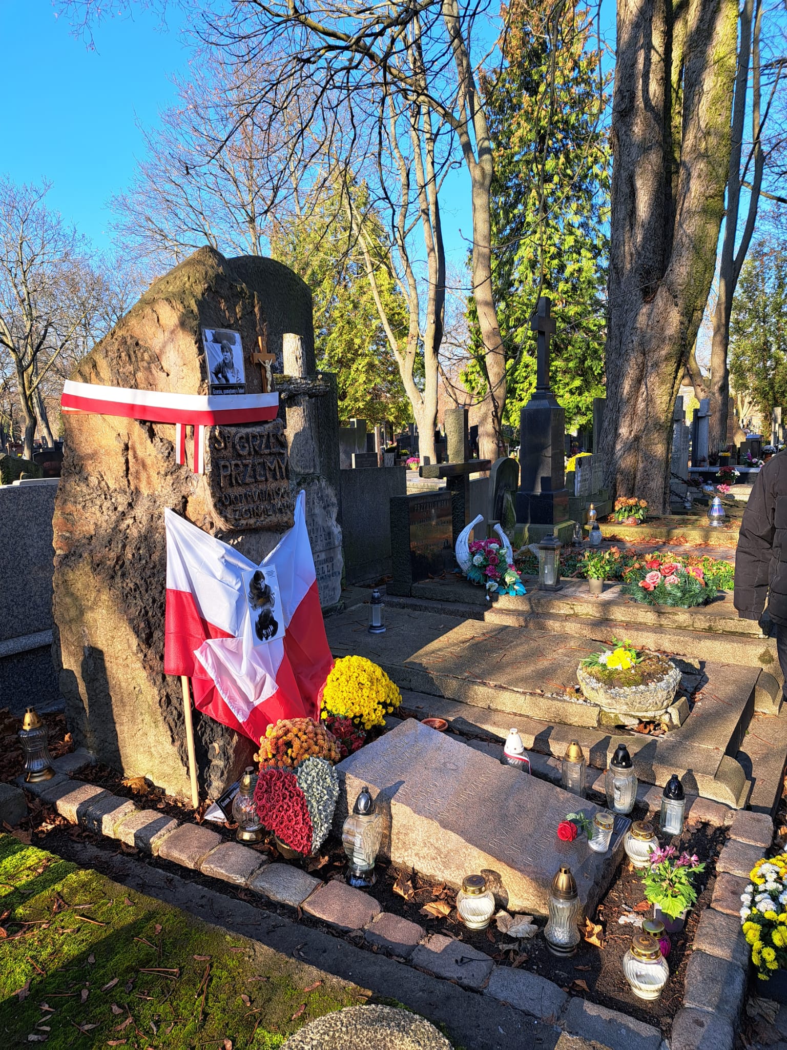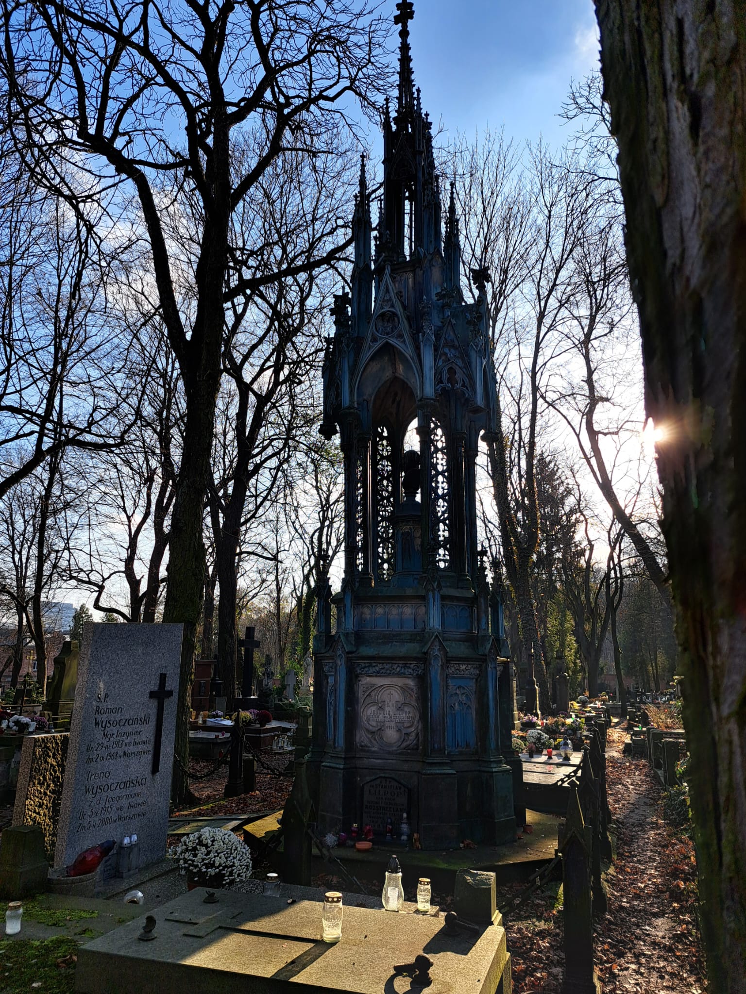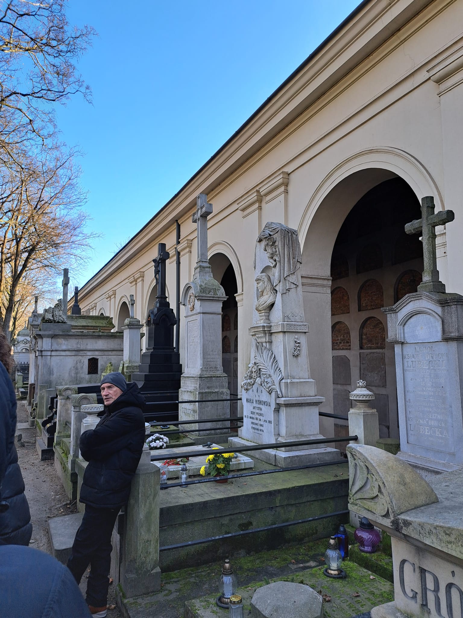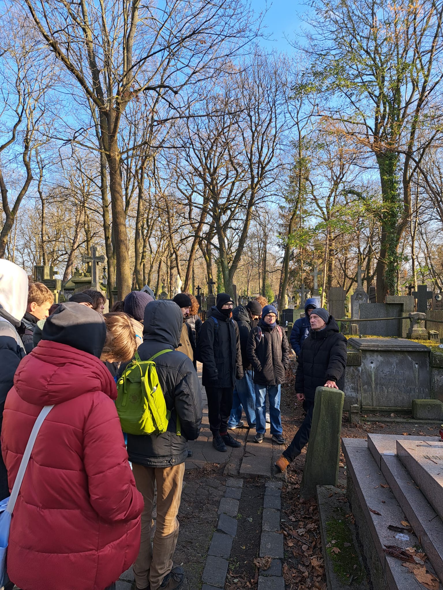 W środę 19 listopada uczniowie 3a odwiedzili znany warszawski cmentarz Stare Powązki. W czasie spaceru towarzyszył nam Pan Przewodnik, który bardzo ciekawie opowiadał o tym niezwykłym miejscu oraz o wybitnych postaciach polskiej historii i kultury pochowanych na Powązkach. Odwiedziliśmy także grób Pana Jerzego Sterkowskiego, nauczyciela naszego liceum. Zapaliliśmy symboliczny znicz i uczciliśmy minutą ciszy pamięć Pana Profesora.