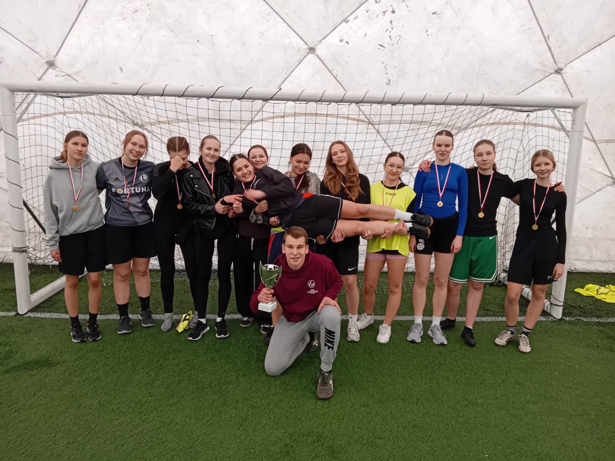 Dnia 26 marca odbyły się mistrzostwa dzielnicy w piłce nożnej dziewcząt. W grupie rozegraliśmy dwa mecze: z LO im. Adama Mickiewicza (0:0) oraz LO im. Jakuba Jasińskiego (3:0). W półfinale pokonaliśmy LO im. Powstańców Warszawy (1:0). Mecz finałowy z ZS im. Olimpijczyków Polskich byl bardzo zacięty. Ostatecznie zwyciężyliśmy w karnych 2:1.