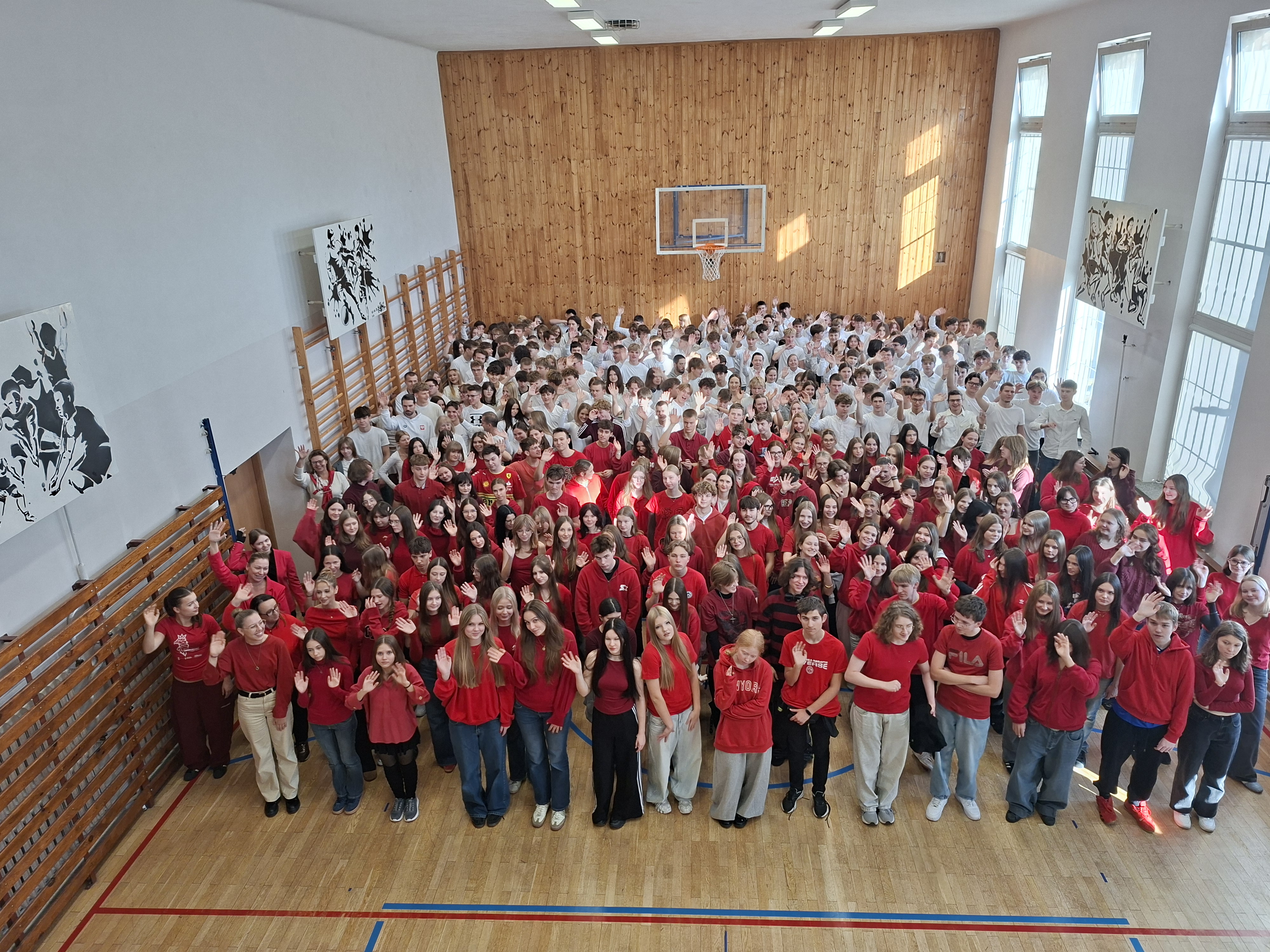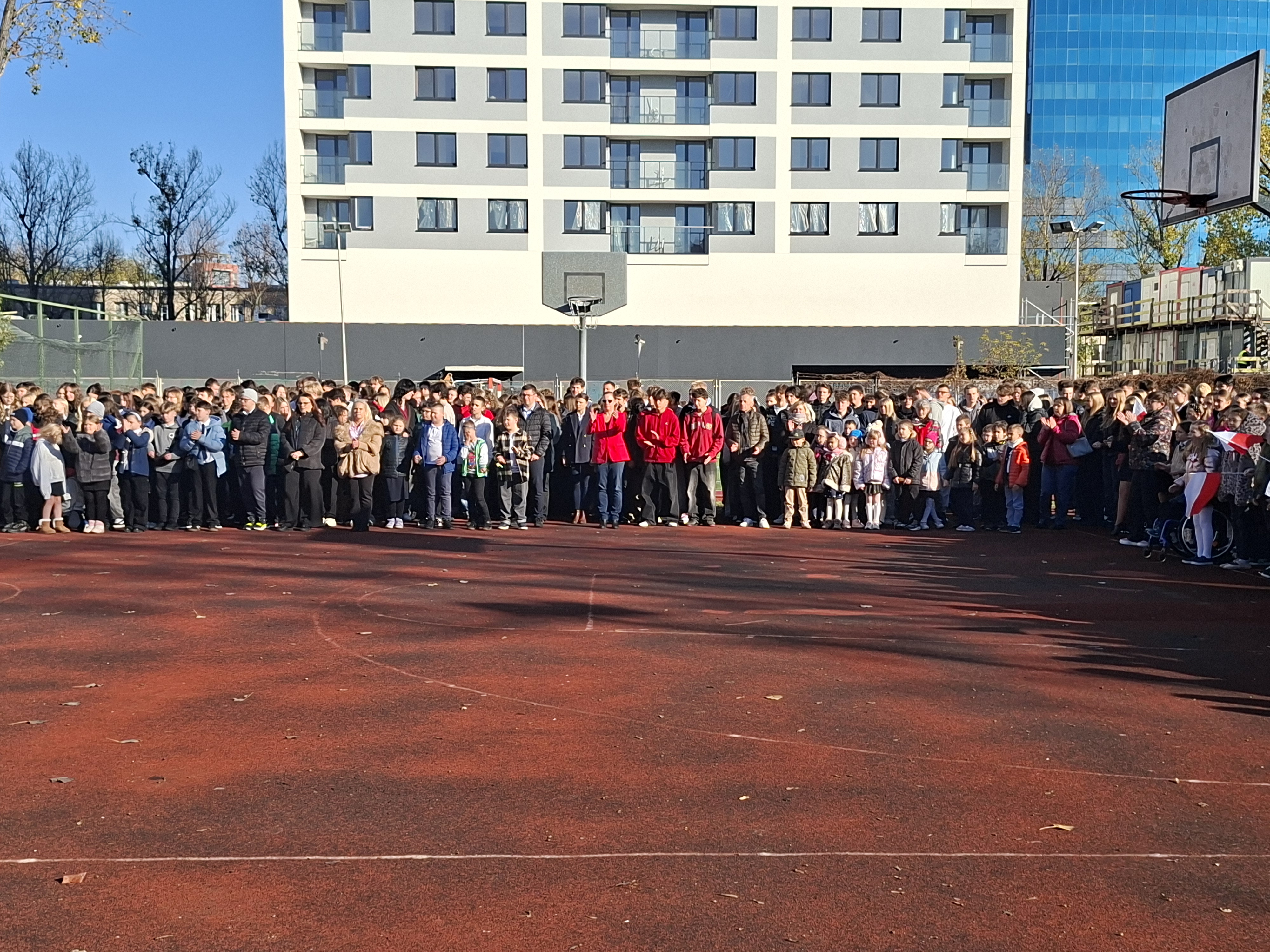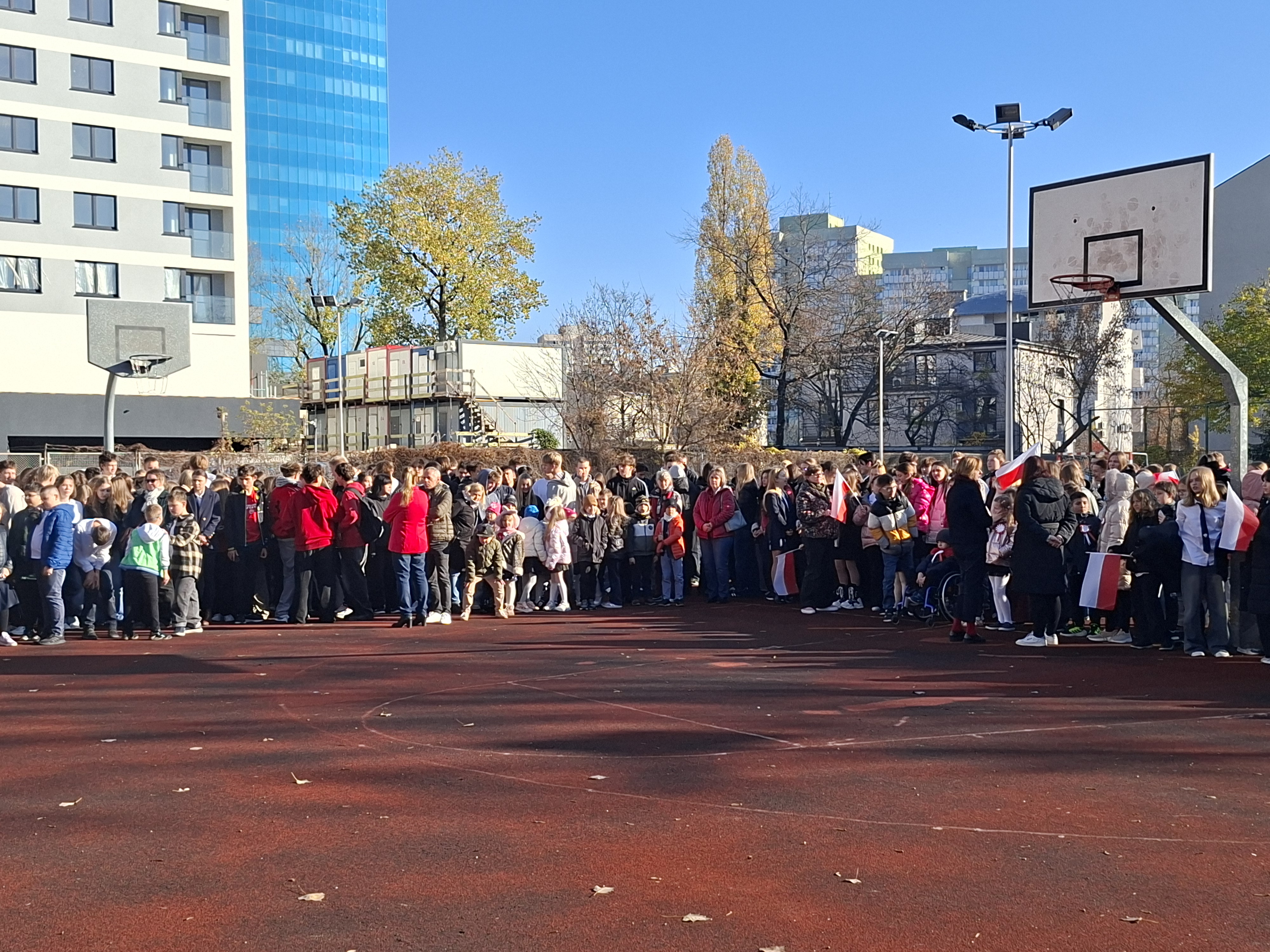 Jak co roku razem z uczniami i nauczycielami Szkoły Podstawowej Nr 120 odśpiewaliśmy hymn, a następnie przy dźwiękach poloneza wróciliśmy do szkoły, gdzie zgodnie z naszą szkolną tradycją, uczniowie ubrani w narodowe barwy utworzyli ogromną flagę.