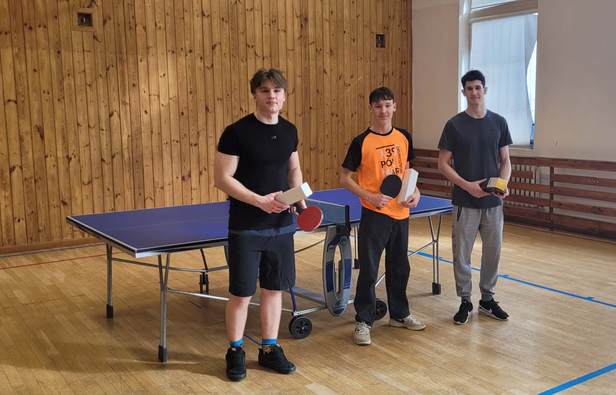 W lutym odbył się szkolny turniej tenisa stołowego. Do zawodów zgłosiło się aż 48 zawodników. Mecze były rozgrywane systemem pucharowym. W finale znalazło się trzech zawodników. Mecze finałowe rozgrywane były ,,każdy z każdym".