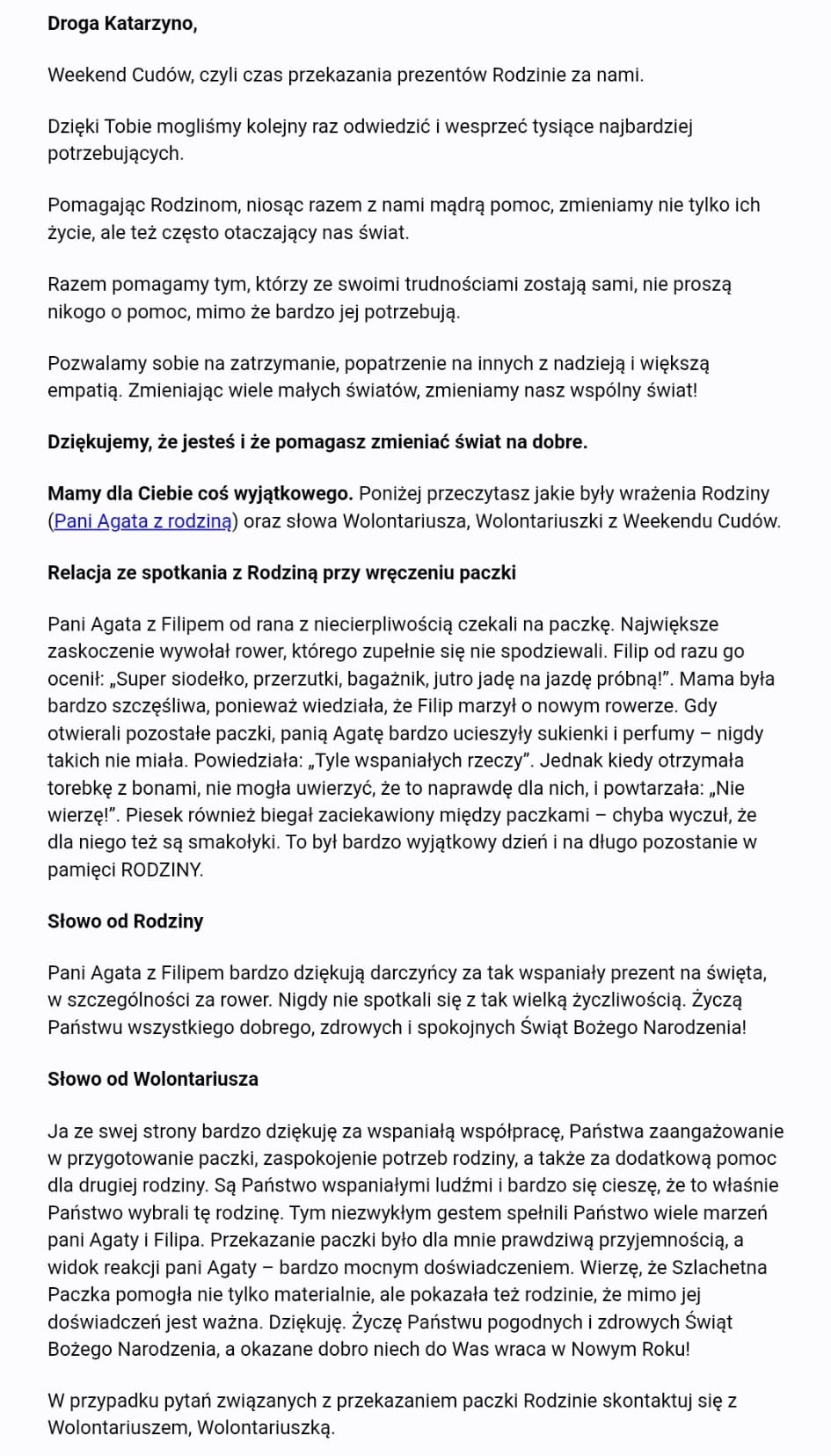 Ale najgorętsze podziękowania składamy p. Katarzynie Downar, która była koordynatorką akcji w naszej szkole i to ona zainspirowała nas do bezinteresownego czynienia dobra.