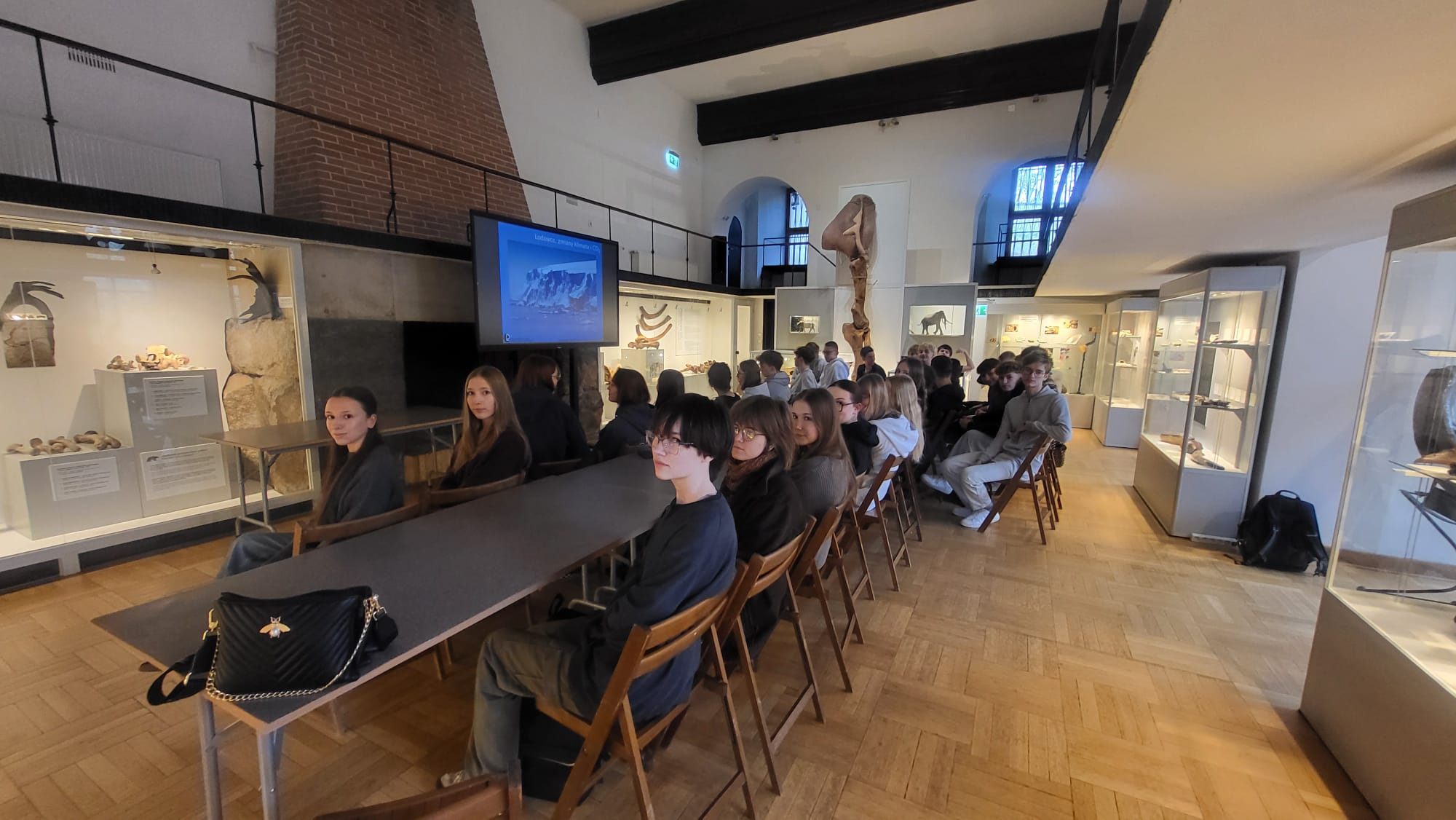 Oprócz zajęć uczniowie zwiedzili wystawy stałe, prezentujące skały minerały, kolekcję skamieniałości, składającą się ze szkieletów dinozaurów, ptaków, ssaków, żółwi, krokodyli, jaszczurek węży oraz bezkręgowców i roślin, kolekcję bursztynów i meteorytów. Szczególną uwagę uczniów zwróciła ekspozycja poświęcona wielkim ssakom, które żyły na terenach Polski w czwartorzędzie, podczas plejstocenu nazywanego często epoką lodowcową.