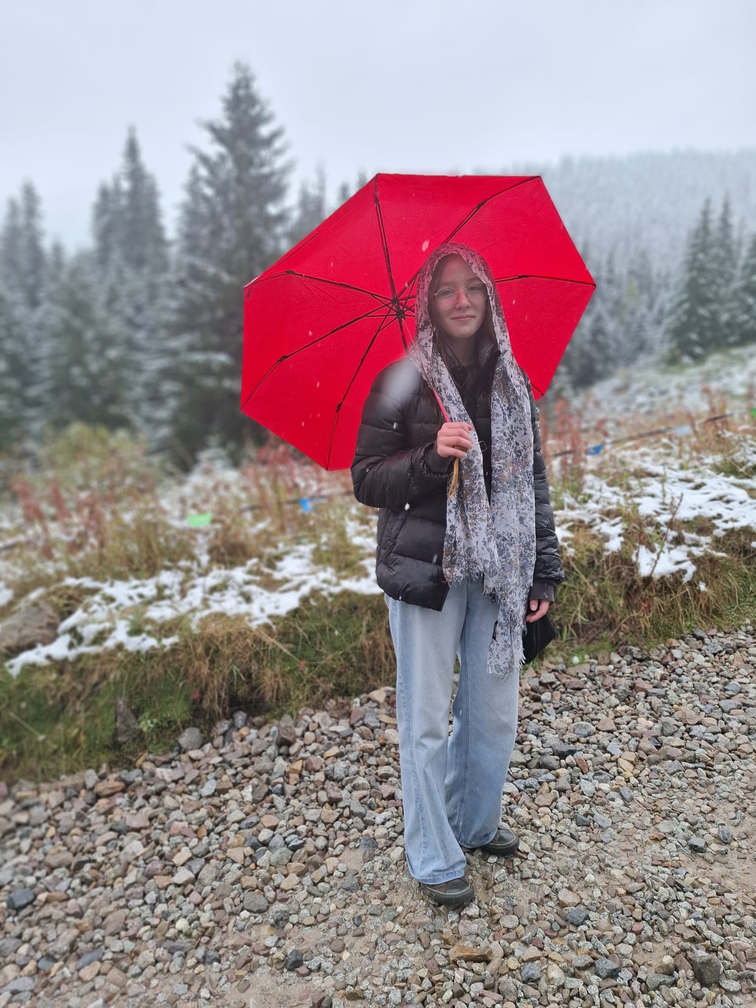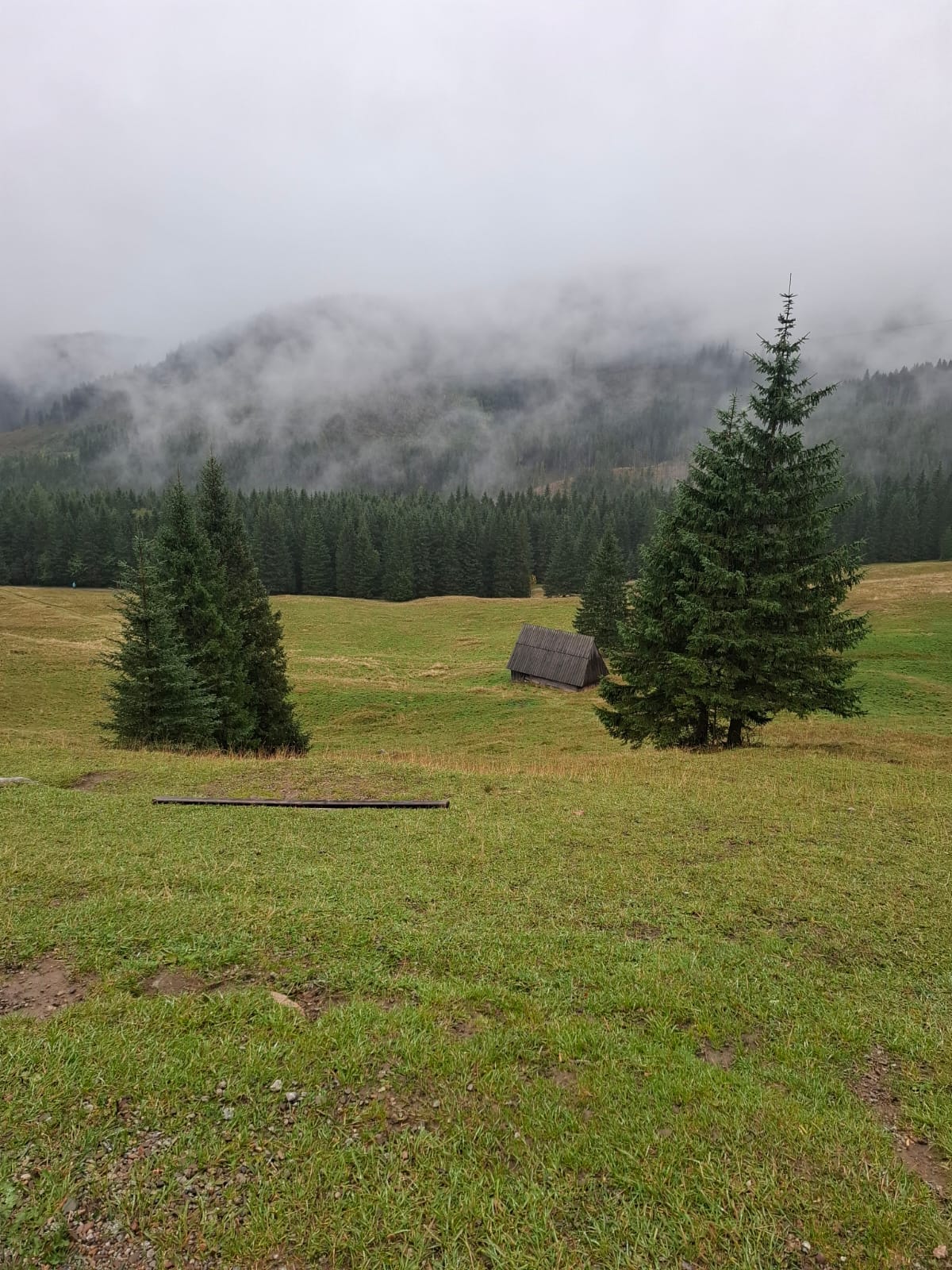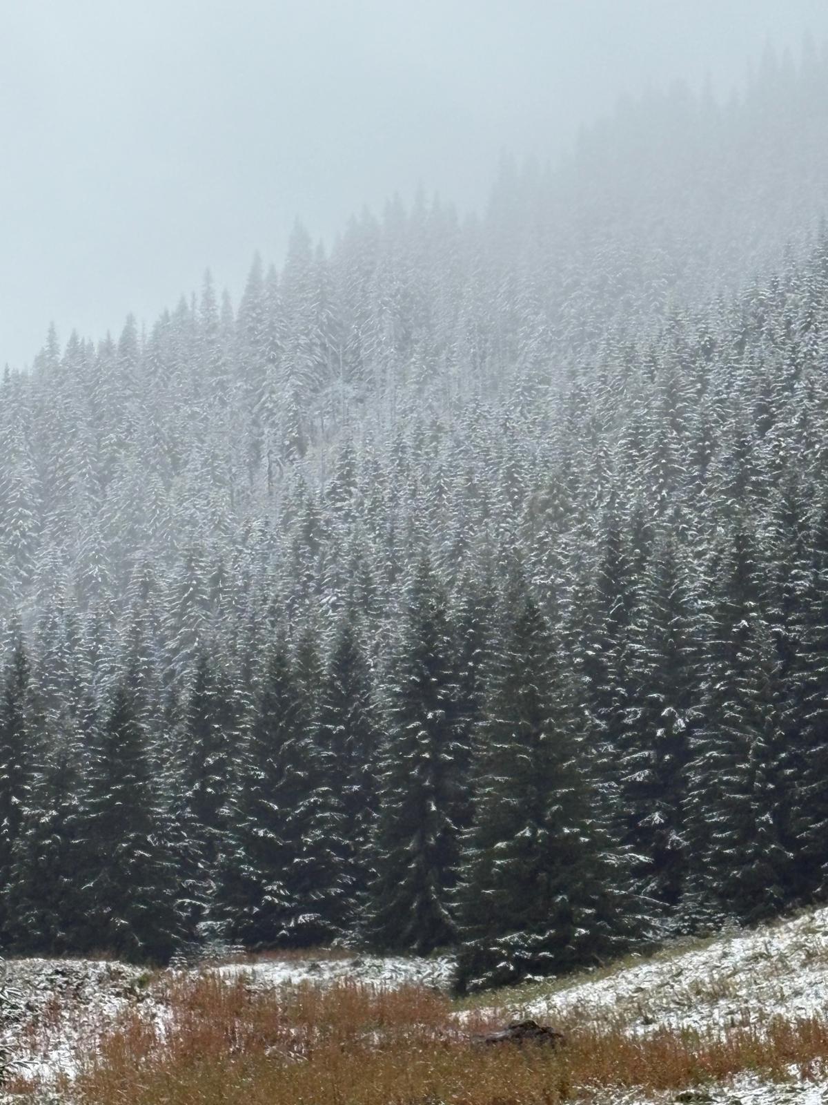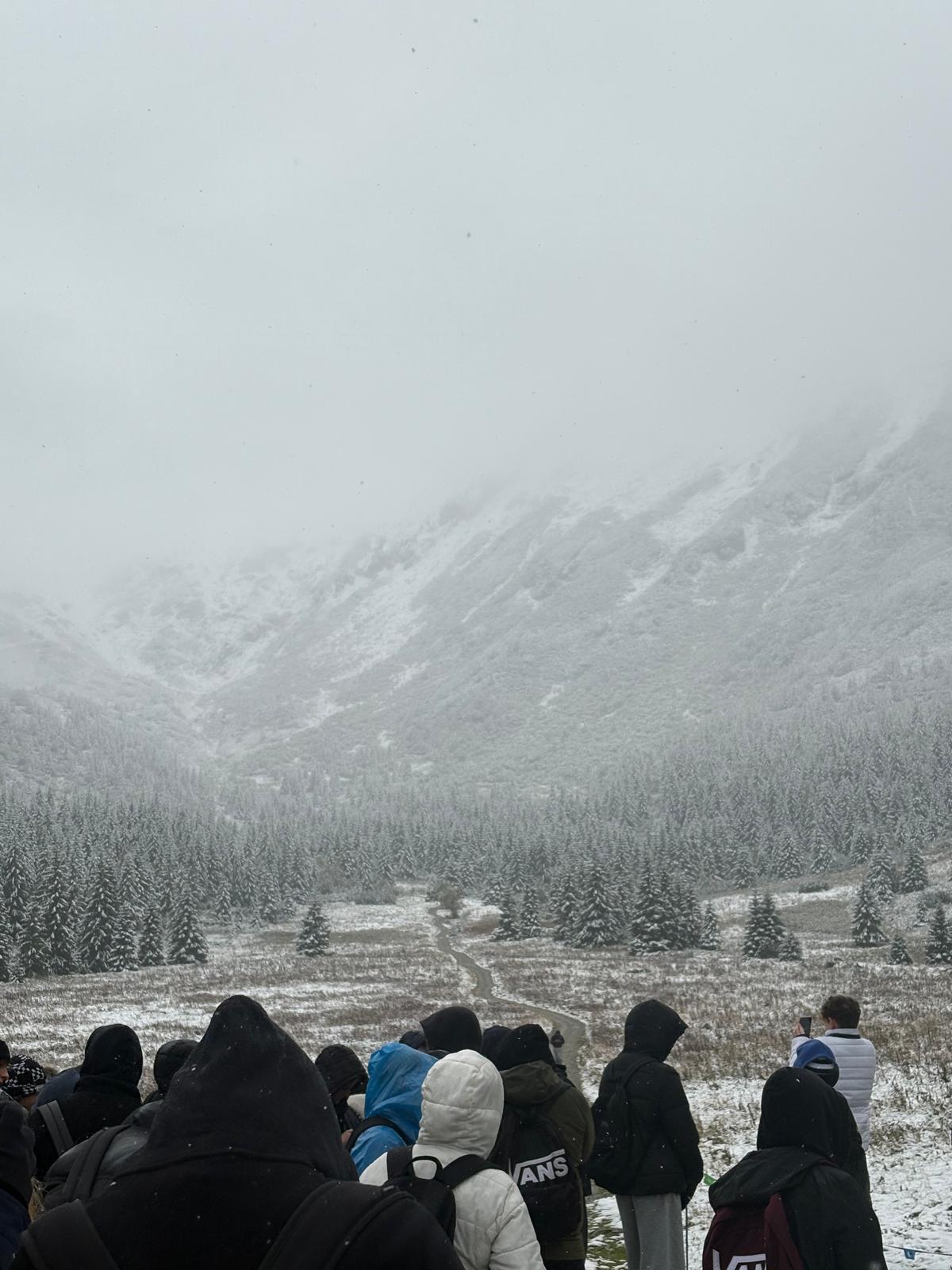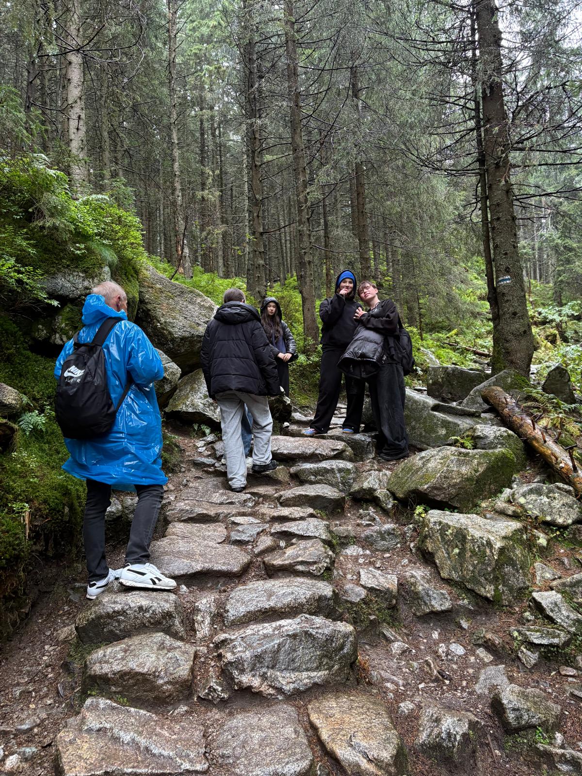 Z Poronina, gdzie spaliśmy , wyruszyliśmy na górski szlak. W drodze na Halę Konradowską mogliśmy cieszyć się nie tylko widokiem Tatr, ale także pierwszym padającym na nas w tym roku śniegiem.