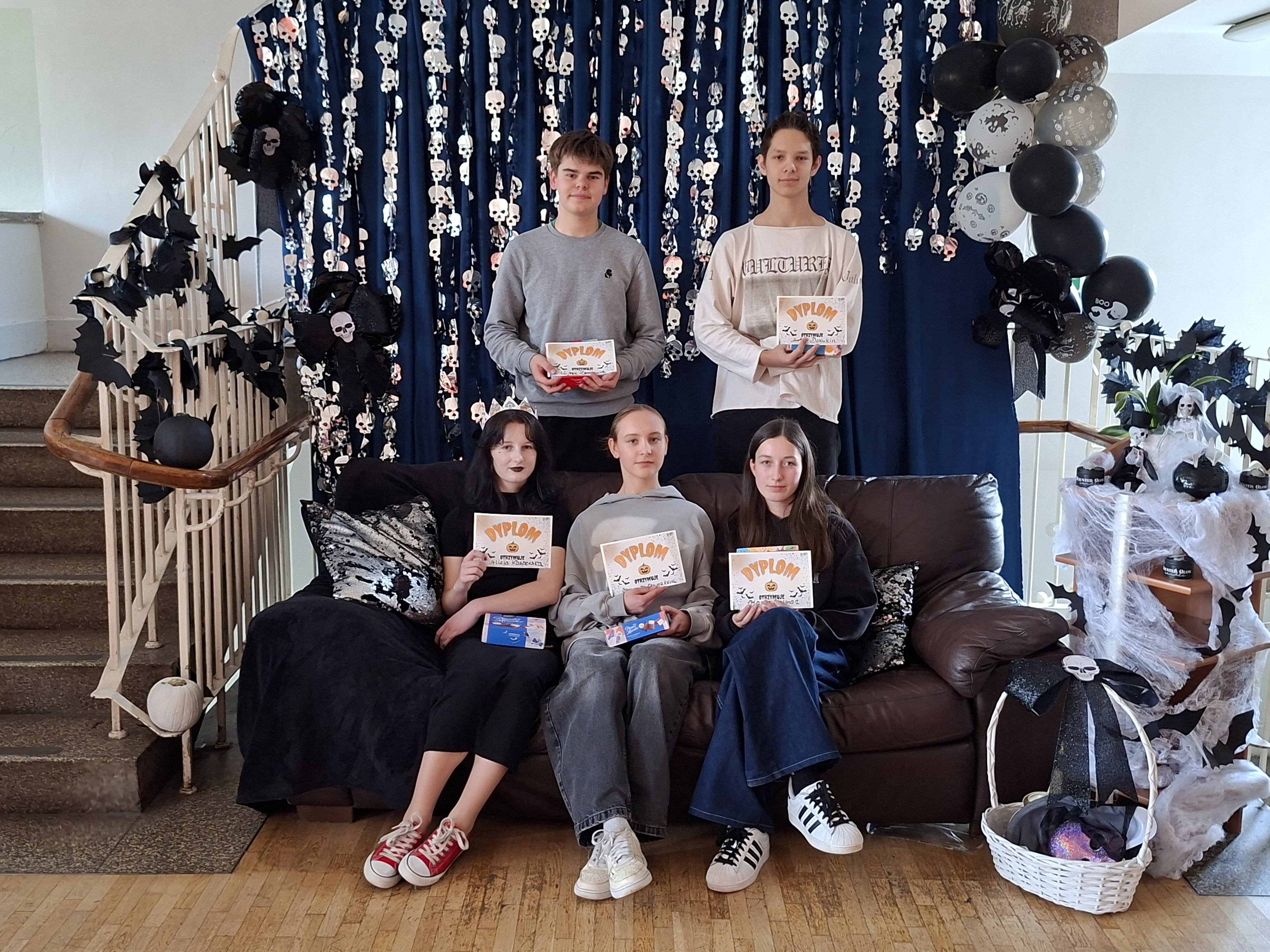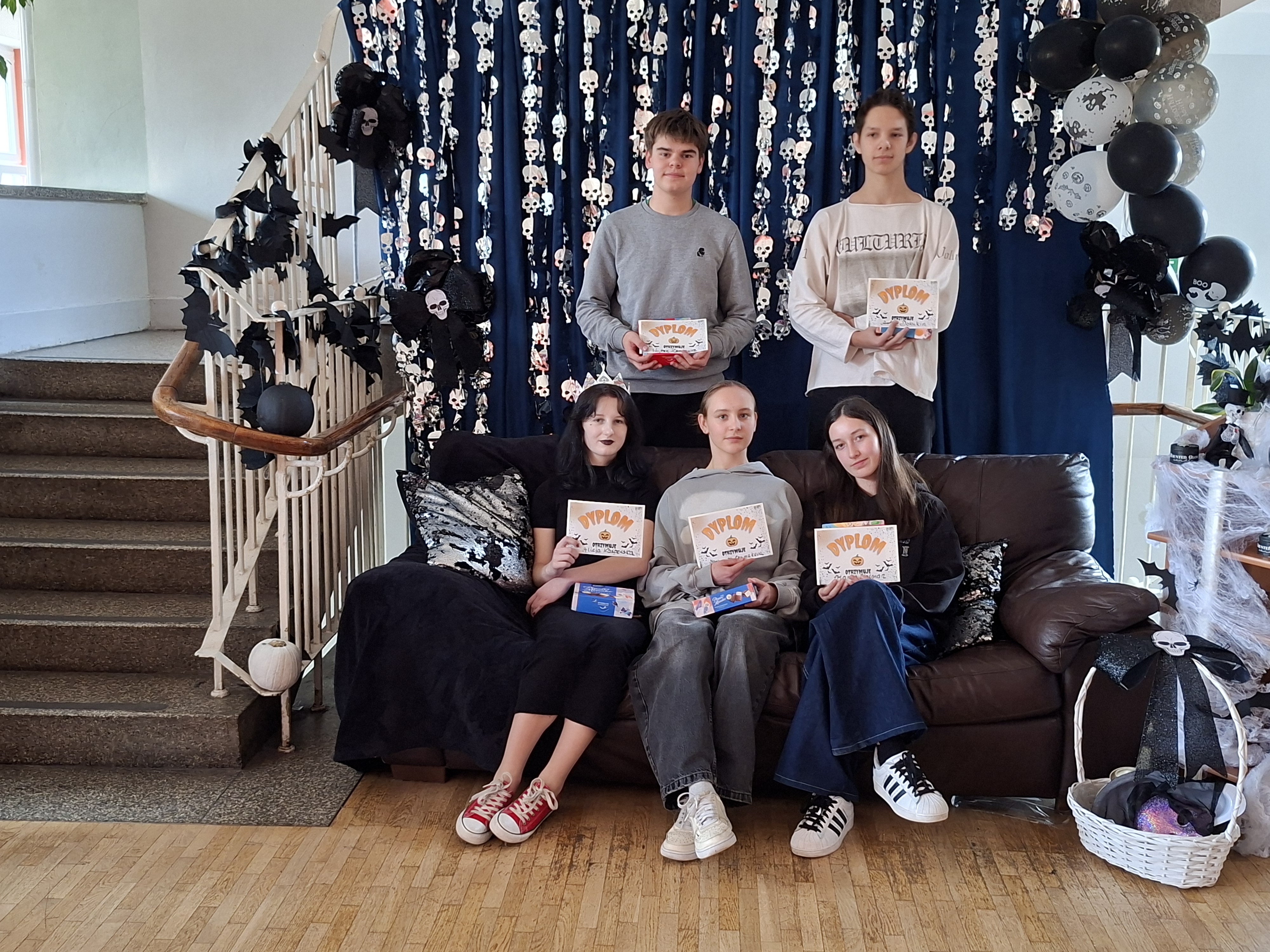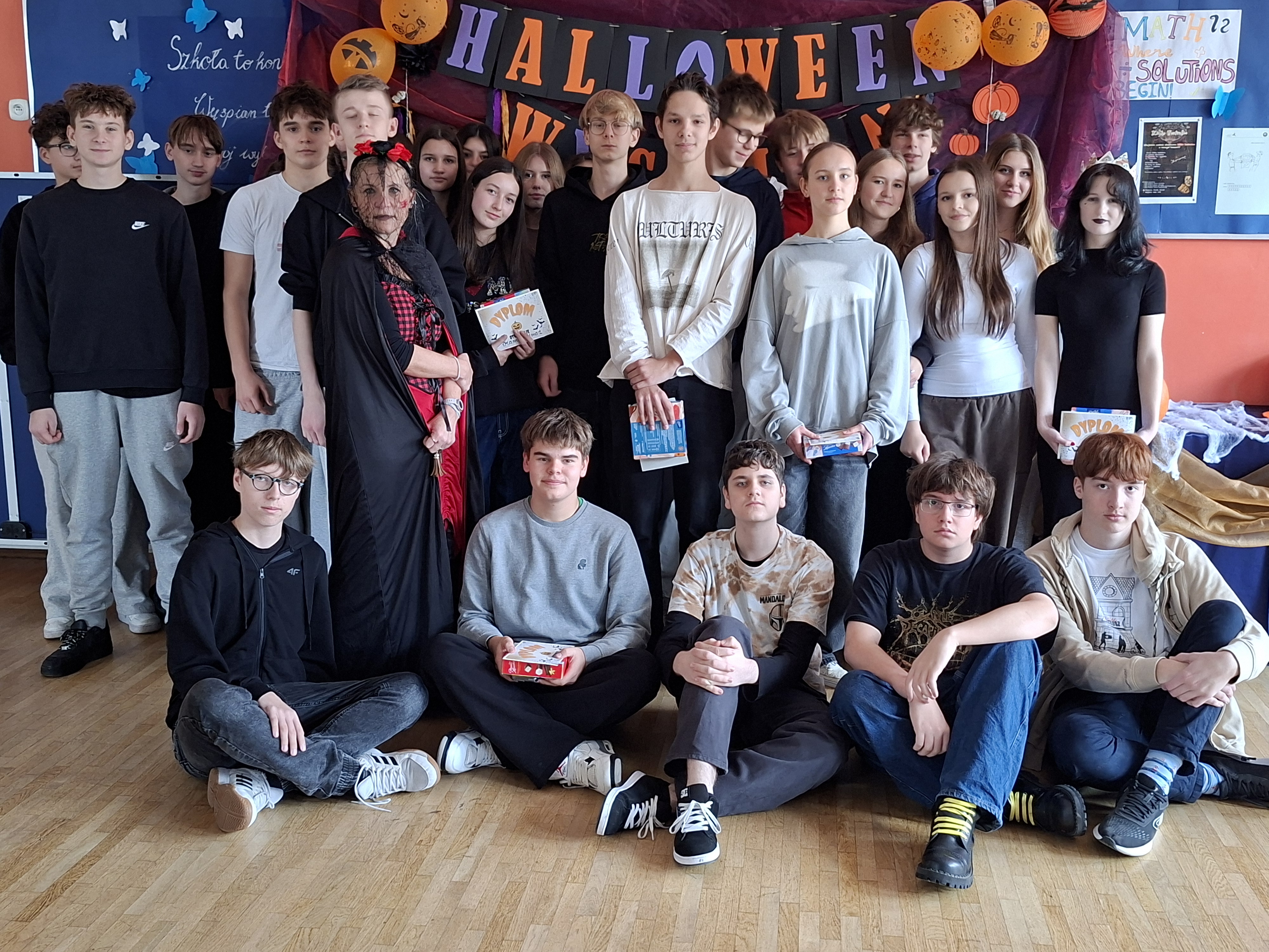 - w konkursie na najlepsze przebranie inspirowane Halloween zwycięzcami zostali: Marianna Banaś, Laura Then i Filip Wasążnik z klasy 4e,