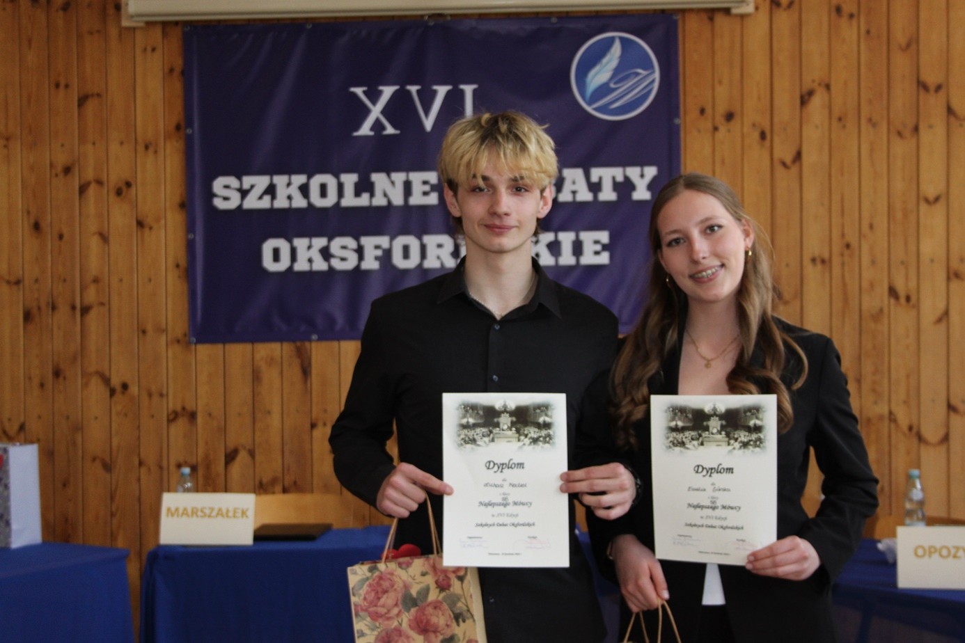 Tytuł Najlepszego Mówcy tegorocznych debat uzyskali ex aequo: Łukasz Kochel z klasy 3B oraz Emilia Górska z klasy 3B, których przygotowanie merytoryczne i umiejętności oratorskie wyróżniały się na tle innych wystąpień.