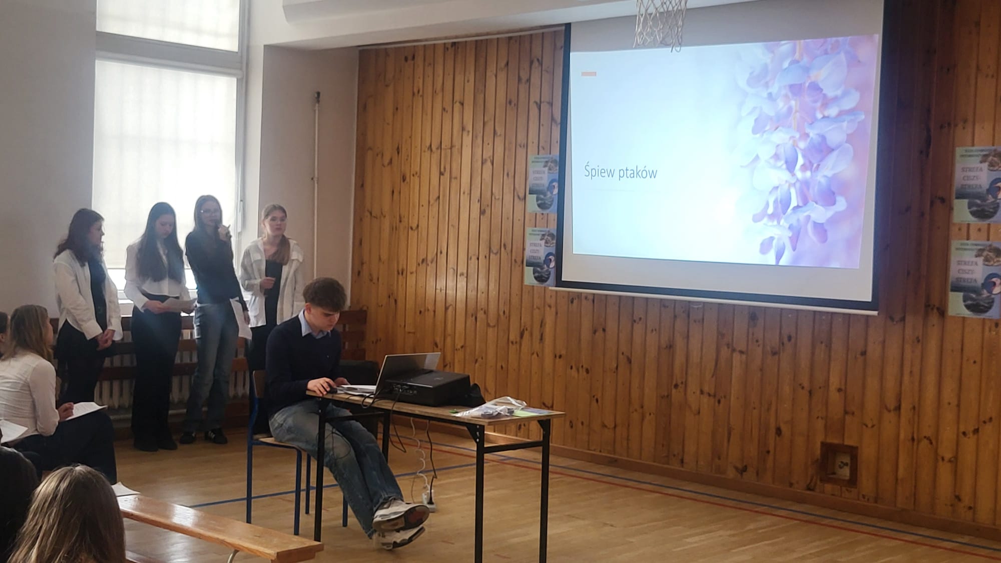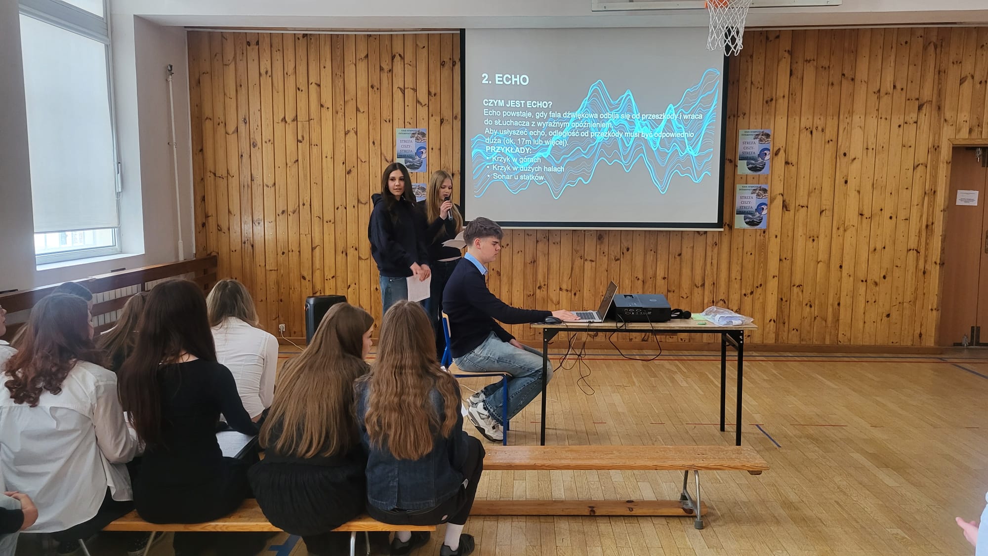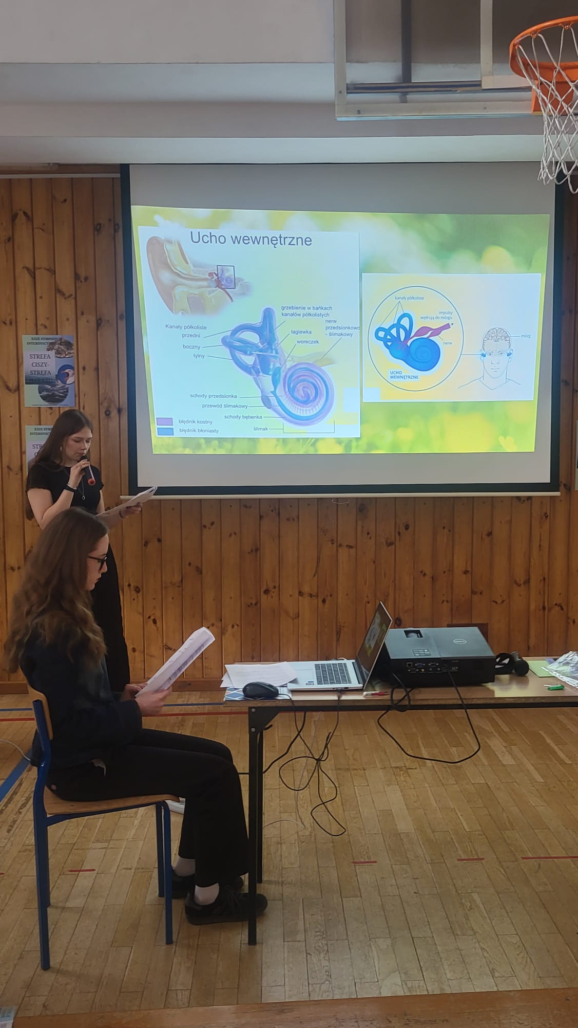 Tegoroczne sympozjum skierowane było głównie do uczniów klas z rozszerzoną biologią i chemią, ale ze względu na interdyscyplinarny charakter uczestniczyli w nim uczniowie klasy matematyczno-geograficznej i humanistycznej. W pierwszej części uczestnicy prezentowali przygotowane przez siebie tematy. Słuchacze poznali te dźwięki w przyrodzie, które budzą w nas niepokój oraz poznali znaczenie ciszy dla żywych organizmów. Młodzież dowiedziała się, jak muzyka wpływa na funkcjonowanie układu nerwowego oraz jak destruktywny jest hałas. Szczególnie zainteresowały uczniów tematy związane z działaniem ucha i chorobami tego narządu. Uczniowie klas humanistycznych zaskoczyli nas oryginalnymi tematami, takimi jak muzyczność w dziele literackim czy znaczenie dźwięków w ujęciu historycznym. Wszystkie prezentacje podlegały ocenie uczniowskiego jury.