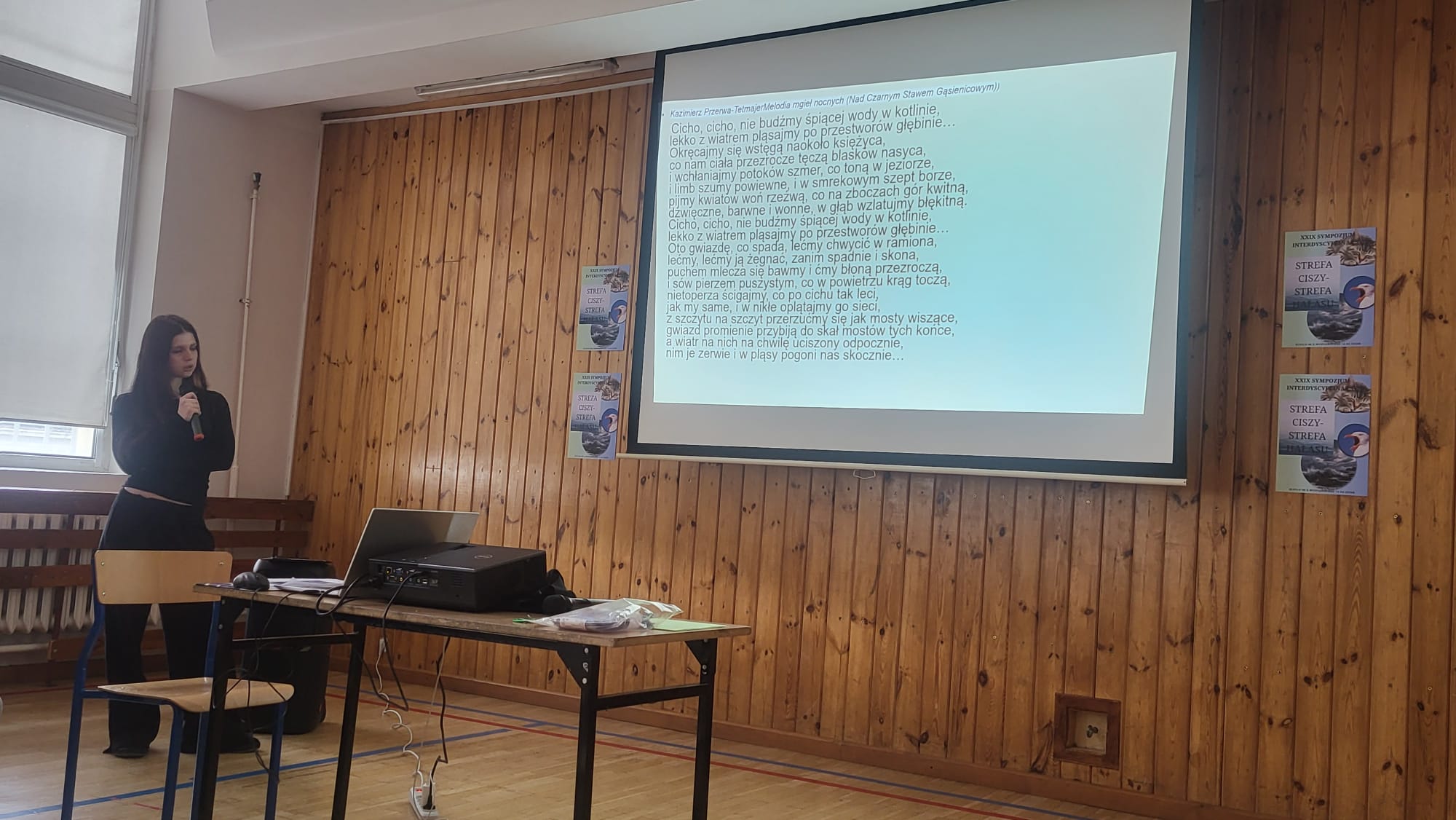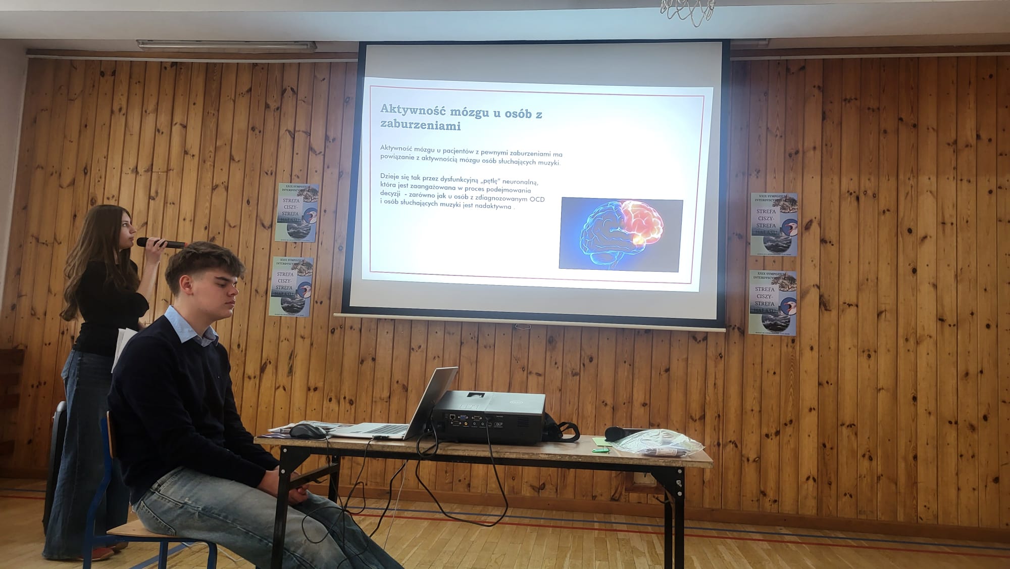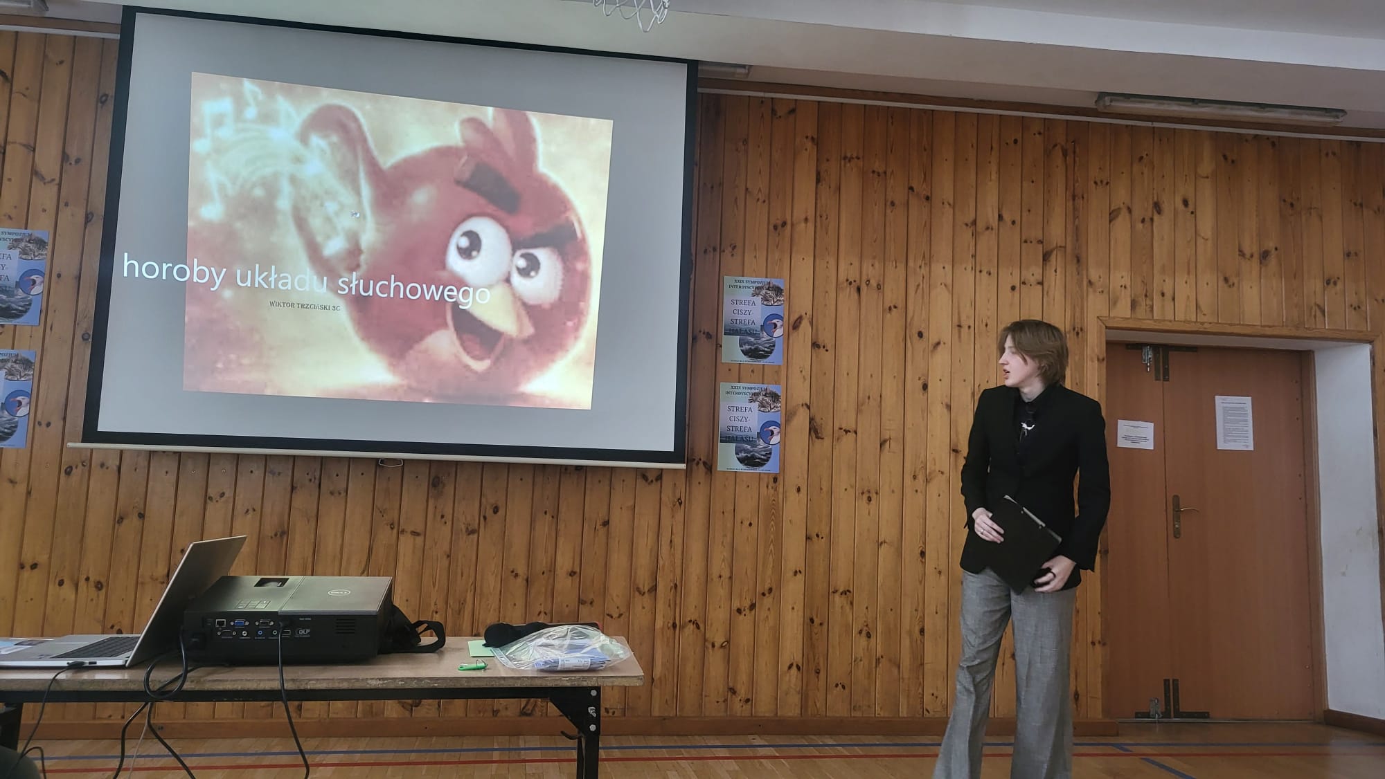 Tegoroczne sympozjum skierowane było głównie do uczniów klas z rozszerzoną biologią i chemią, ale ze względu na interdyscyplinarny charakter uczestniczyli w nim uczniowie klasy matematyczno-geograficznej i humanistycznej. W pierwszej części uczestnicy prezentowali przygotowane przez siebie tematy. Słuchacze poznali te dźwięki w przyrodzie, które budzą w nas niepokój oraz poznali znaczenie ciszy dla żywych organizmów. Młodzież dowiedziała się, jak muzyka wpływa na funkcjonowanie układu nerwowego oraz jak destruktywny jest hałas. Szczególnie zainteresowały uczniów tematy związane z działaniem ucha i chorobami tego narządu. Uczniowie klas humanistycznych zaskoczyli nas oryginalnymi tematami, takimi jak muzyczność w dziele literackim czy znaczenie dźwięków w ujęciu historycznym. Wszystkie prezentacje podlegały ocenie uczniowskiego jury.