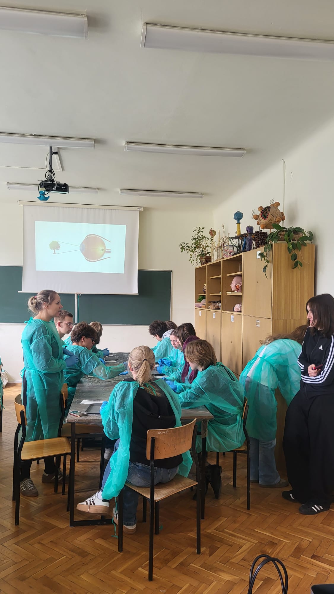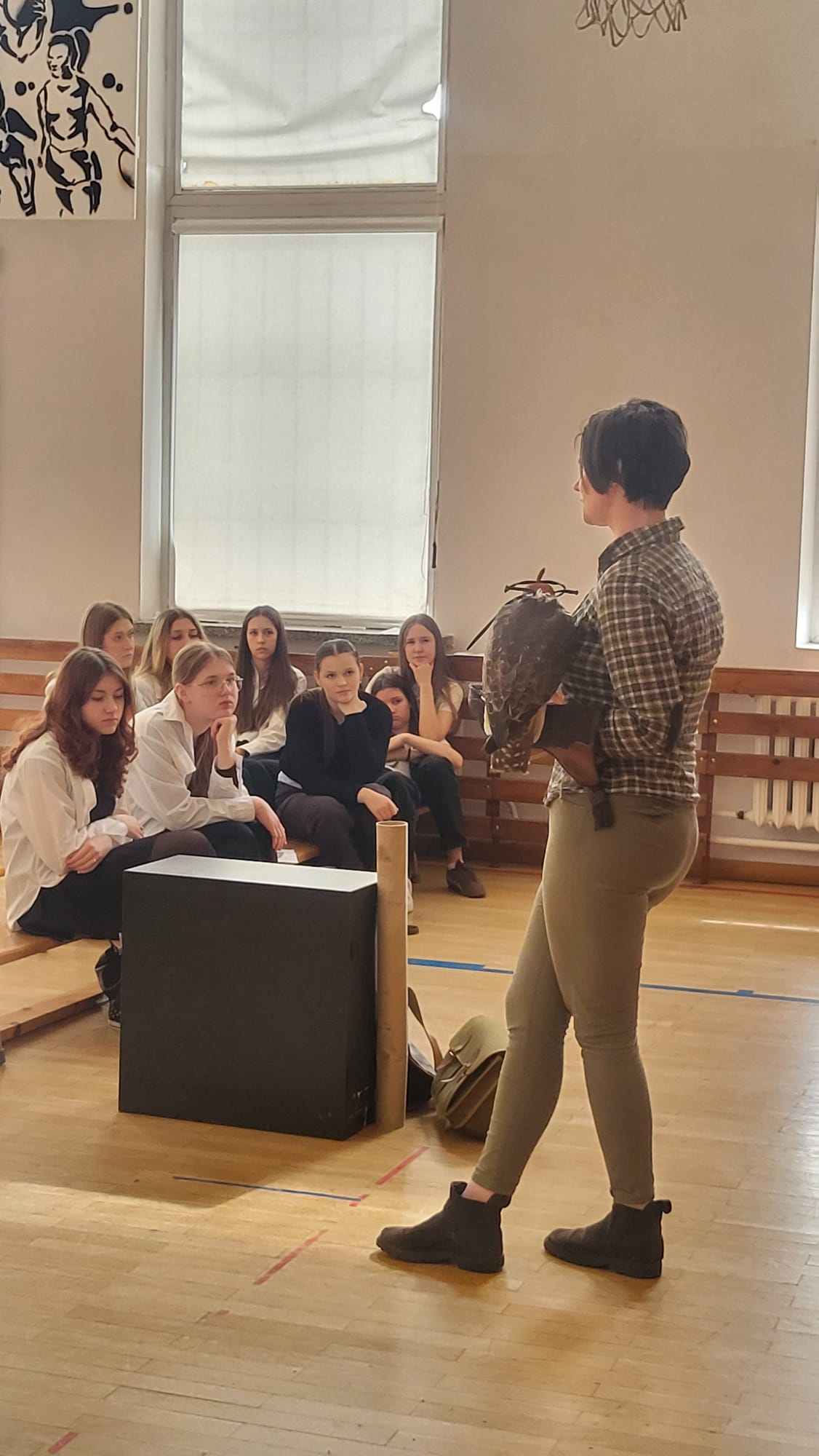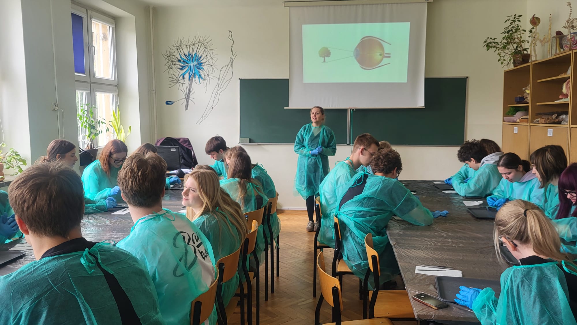 W drugiej części młodzież uczestniczyła w warsztatach. Klasa pierwsza wykonywała eksperymenty biochemiczne pod kierunkiem tegorocznych maturzystów oraz spotkała się z ornitologiem-sokolnikiem i jego podopiecznymi Sokołem wędrownym i Uszatką zwyczajną. Młodzież klas drugich i trzecich poznała zasady mowy migowej podczas zajęć z panem dr Marcinem Łuczywkiem pracownikiem naukowym Zakładu Językoznawstwa Ogólnego, Migowego i Bałtystyki Wydziału Polonistyki Uniwersytetu Warszawskiego. Dla uczniów tych klas przygotowane były również warsztaty anatomiczne. Podsumowaniem sympozjum było wystąpienie pani dr Małgorzty Libman-Sokołowskiej, która przygotowała wykład "O cudownym wynalazku mowy".